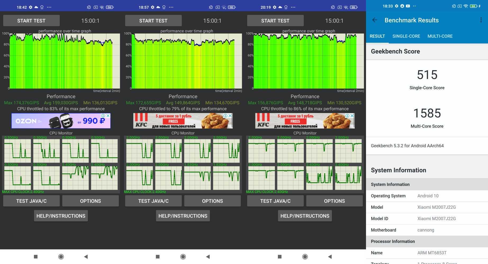 На случайный глюк это не похоже — например, в процессе тестирования Modern Combat 5 игра тоже постоянно жаловалась на потерянное интернет-соединение, бывало по нескольку раз в 15 минут даже. При этом, вышеупомянутые бенчмарки так и не смогли “увидеть” интернет, хотя все разрешения у них стояли. Это вряд ли проблема Redmi 9 в целом — скорей всего российское представительство Xiaomi просто рассылает обзорщикам тестовые экземпляры, которые откупорили от выставочных стендов в магазинах или с каких-то китайских презентаций. На таких мероприятиях в смартфоны всегда ставят защиту от бенчмарков — как бы намекают нам, что «ты, поганый обзорщик, сейчас отправишь замеры Mediatek Helio G80 до анонса и испортишь нам продажи афишированием его показателей!». Ладно, проехали…